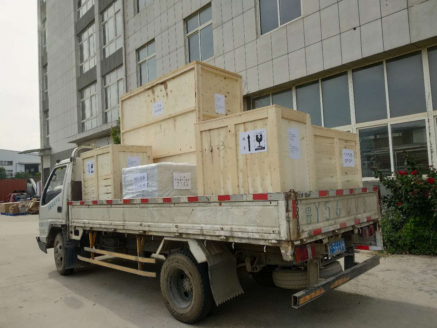 山東知名藥企訂購的大型自動化滴丸生產(chǎn)線裝車發(fā)貨。